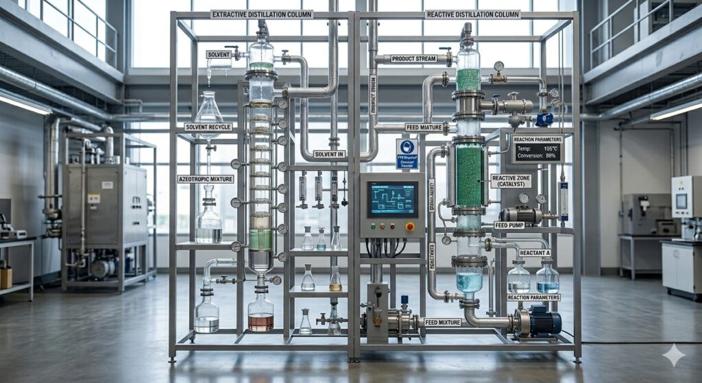 For complex separations and equilibrium-limited reactions, we offer advanced distillation solutions including azeotropic and reactive distillation systems.